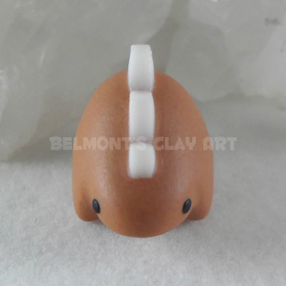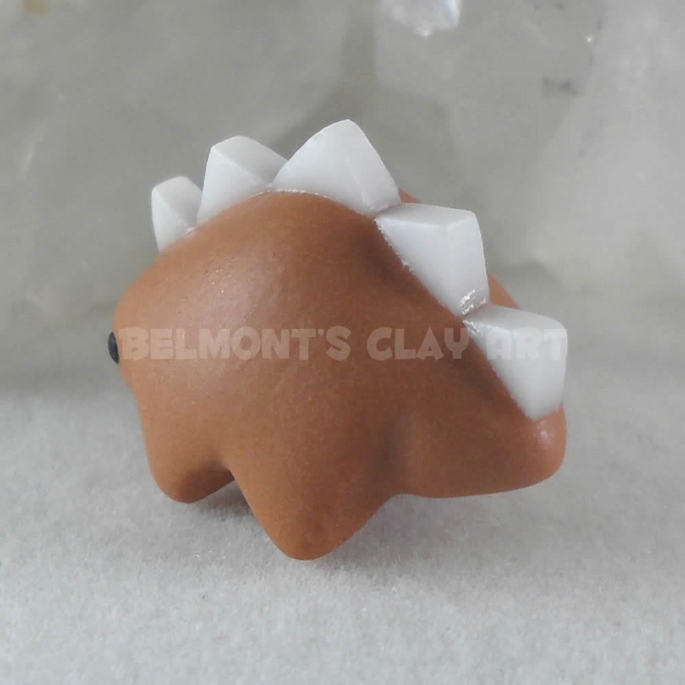 Sculpted from warm gingerbread-brown polymer clay, he features five crisp white icing-style spikes along his back for a simple, festive touch.