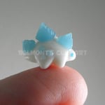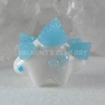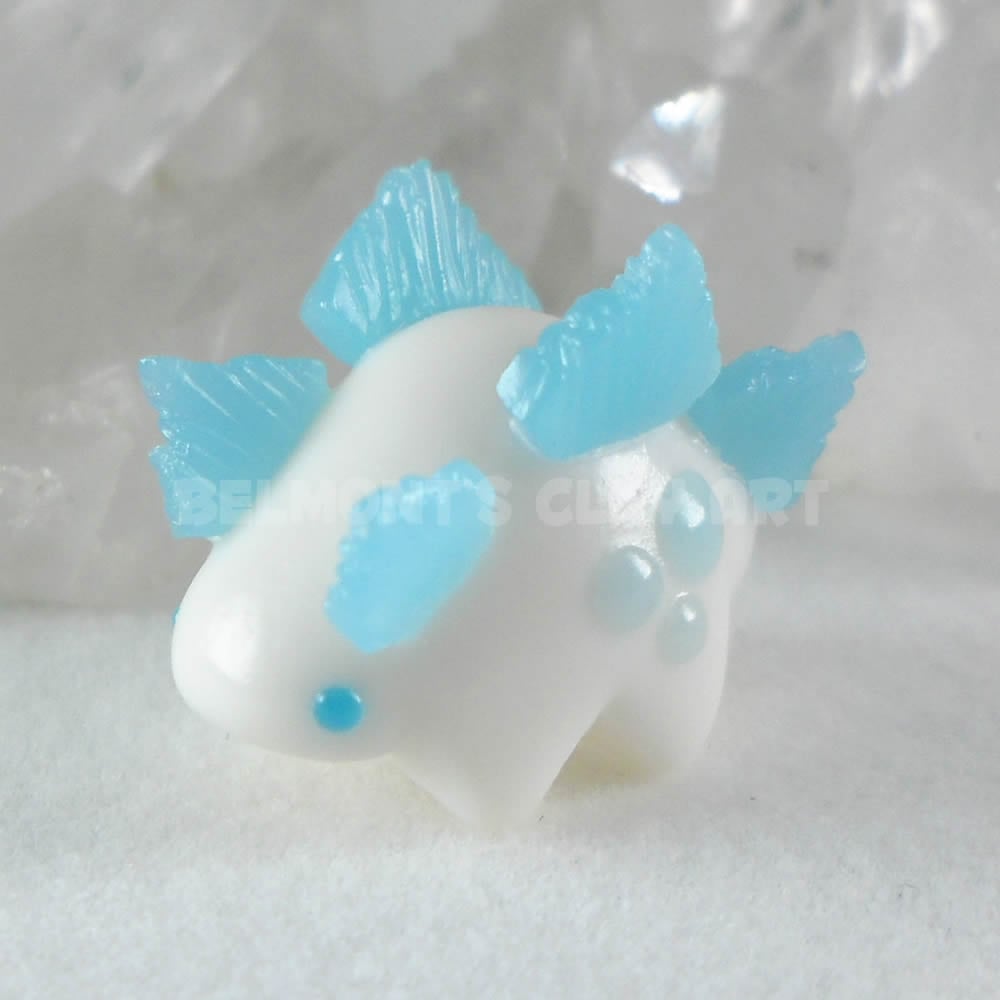 This kawaii-style stegosaurus is sculpted entirely by hand from polymer clay and features a soft white body, reminiscent of fresh snow.