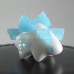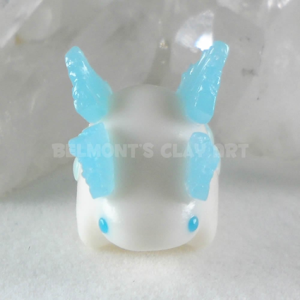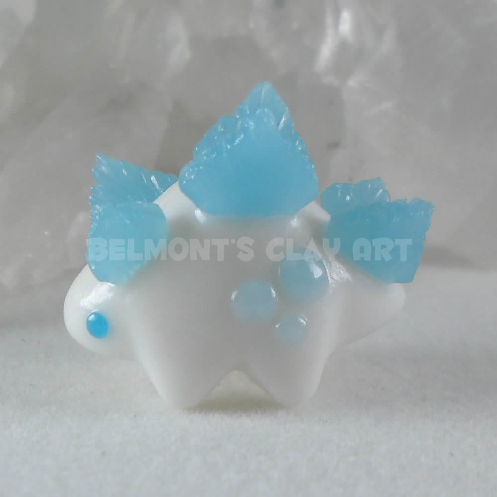 He is decorated with six translucent, glacier-ice blue spots (three on each side), matching his six icy plates along the back. Each plate is delicately carved with fine grooves, giving them the look of frozen ice crystals.