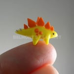 This is a second version of the “yellow mini Stegosaurus”. This Stegosaurus 2.0 has ten slightly rounded plates on its back and four tiny spikes at the end of its tail. These tiny creatures are the perfect decorative items for small figurine shelves or miniature dioramas👌.